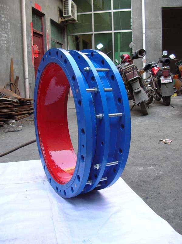 2、雙法蘭傳力接頭是由法蘭松套伸縮接頭和短管法蘭、傳力螺桿等構件組成。雙法蘭傳力接頭能降低被連接件的壓力推力(盲板力)和補償管路安裝誤差,雙法蘭傳力接頭不能吸收軸向位移。雙法蘭傳力接主要用于泵、閥門等附件的松套連接。